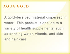 Вещество, извлеченное из золота, размешивают в воде. Этот продукт применяют в различных товарах для здоровья и красоты, например питьевой воде, витаминах, средствах для ухода за кожей и волосами.